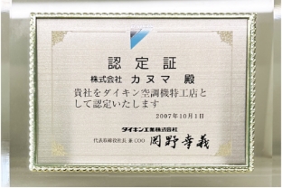 弊社は、ダイキン資格認定制度を基づいたダイキン空調機特工店の認定を有している会社です。